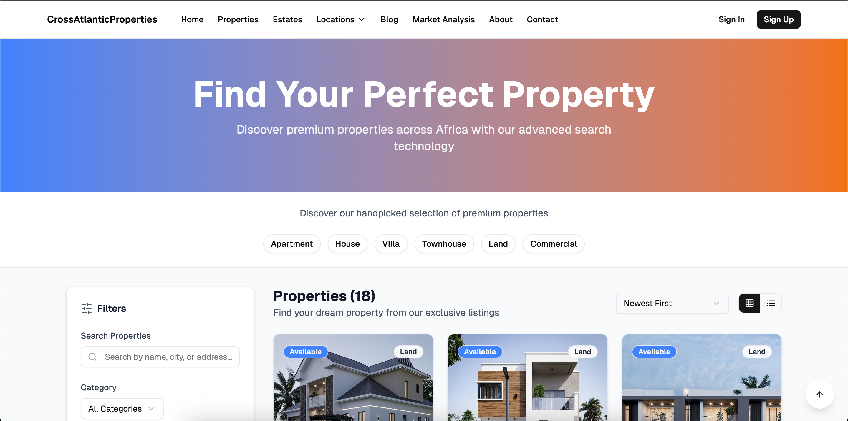 A real estate marketplace to buy, sell, rent properties, and shortlets.